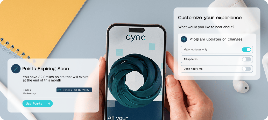 Cync untangles loyalty putting clarity, fairness, and real financial value at your fingertip. Your preferences guide a rewards experience built on trust, simplicity, and genuine benefit. Cync is more than a technology platform, it stands for a smarter, collective movement toward rewards that truly reflect what matters.